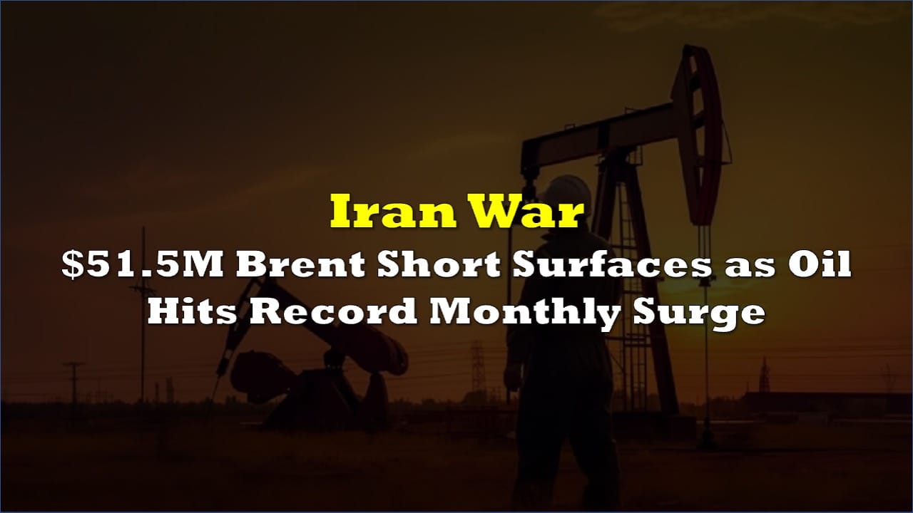 An anonymous trader has opened a $51.5 million short position on Brent crude with 5x leverage on the blockchain trading platform Hyperliquid, a contrarian bet against oil prices that have surged more than 55% in March alone — the benchmark’s steepest monthly climb on record.