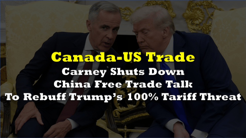 Ottawa is explicitly rejecting any China free trade track, after a US threat framed a China “deal” as a potential trigger for a blanket 100% tariff on Canadian goods entering the US.