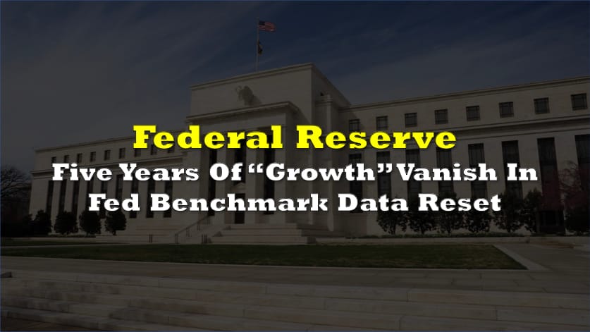 The Federal Reserve has “revised its indexes of industrial production, capacity, and utilization using benchmark data,” effectively erasing five years of reported industrial outperformance, leaving total US industrial production in August 2025 roughly flat versus February 2020 instead of the previously reported 2.2% gain.